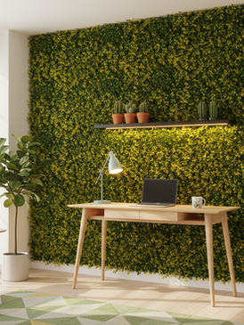 Nuestros follajes artificiales para muros son una solución decorativa ideal para transformar espacios interiores y exteriores sin necesidad de mantenimiento. Aportan frescura, textura y un efecto natural permanente, siendo perfectos para fachadas, áreas comerciales, restaurantes, oficinas e iglesias. Están fabricados con materiales resistentes y de alta calidad, diseñados para conservar su color y apariencia con el paso del tiempo.